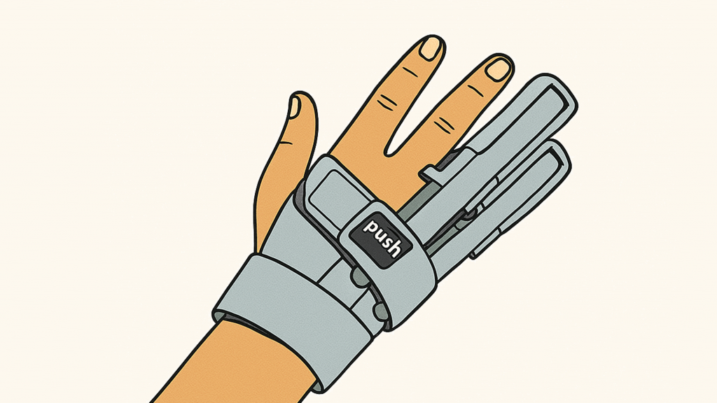Anders als dynamische Fixateure, die eine kontinuierliche und stetig zunehmende Extensionswirkung auf einen gekrümmten Finger ausüben, erlaubt die relativ geringe Kraftentfaltung der Blattfedern eine aktive Beweglichkeit: man kann also bei anliegender Orthese den betreffenden Finger weiterhin beugen und strecken. Für das betroffene Gelenk eine deutlich schonendere Situation.